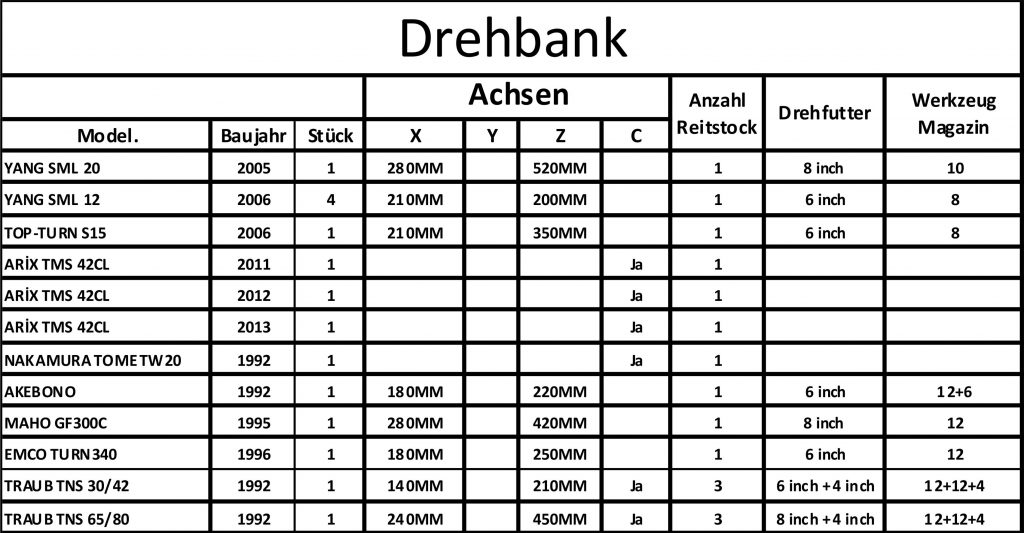 HertellerModel.Spindel inchAchsen Bearbeitungs LaengeY Achse